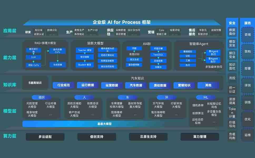 端到端的一站式AI工作空间深度融合了从企业战略规划到日常经营的全流程业务板块,,定向解决车企内部领域多、、、、部门多、、、、链条长、、场景碎片化等难题,,,,支持车企快速构建以AI为核心的生产力写作体系,,,,实现任务执行与AI能力的无缝集成与交互